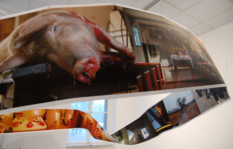 Das Fotoband von Karina Pospiech ist ebenso ein Teil der „Möbiusputzfrau“ wie die akustischen Textschlaufen.